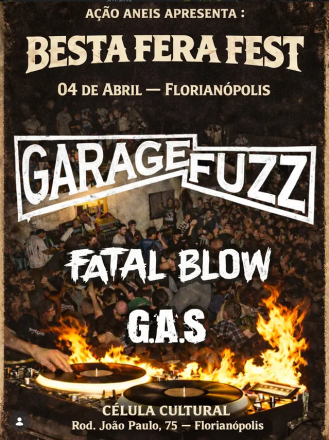 04/04 (SAB) BESTA FERA FEST 🔥BESTA FERA FEST🔥 O caos vai tomar conta de Florianópolis na primeira edição do Besta Fera. Garage Fuzz (@garagef )chega com tudo na ilha para um